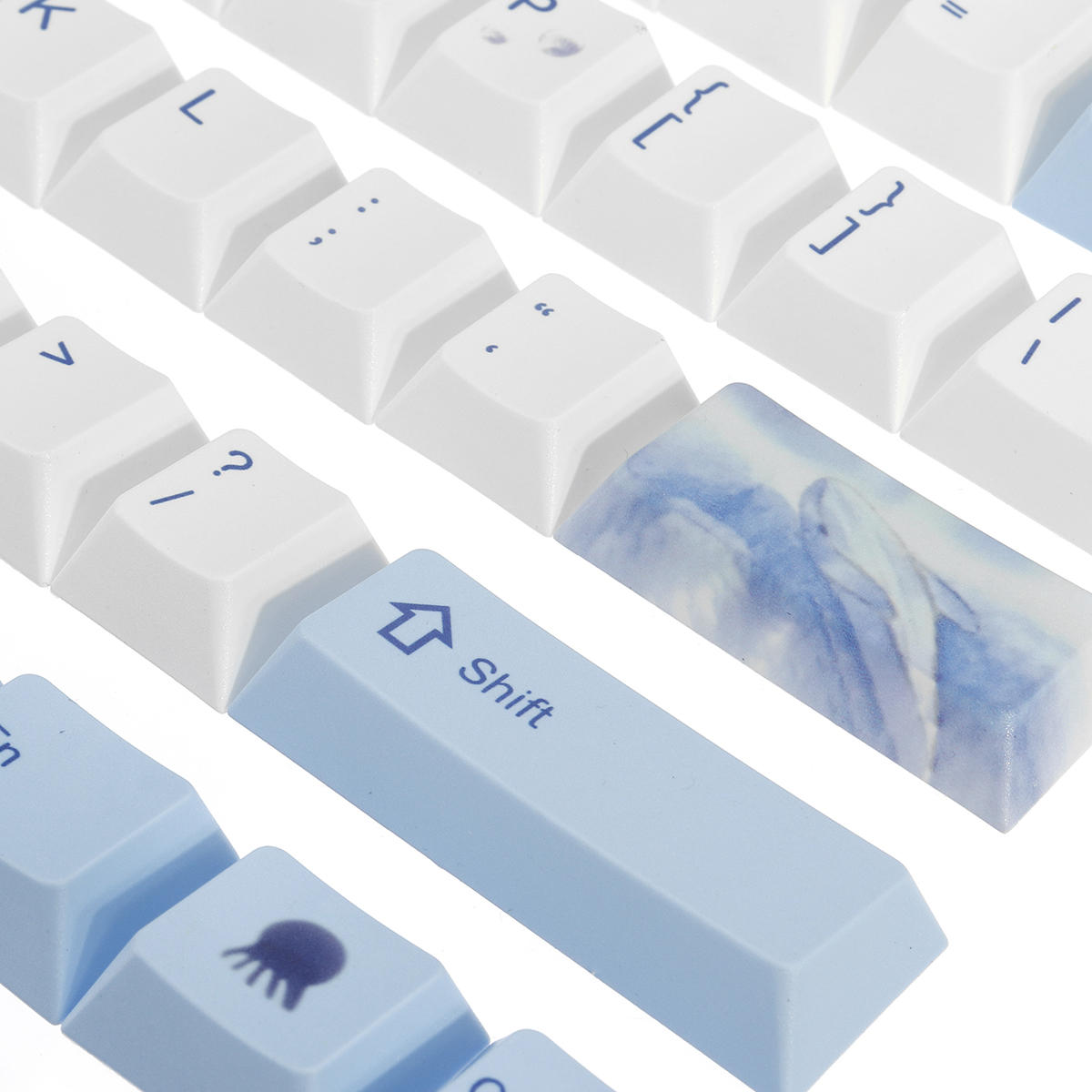 6. PBT-Sublimationsschlüsselkappe: die Farbe ist in die Schlüsselkappe eingedrungen, die Nutzungsdauer von bis zu zehn Jahren wird nicht verblassen, Sie können sicher sein, das Design auf der Taste zu verwenden und zu genießen.