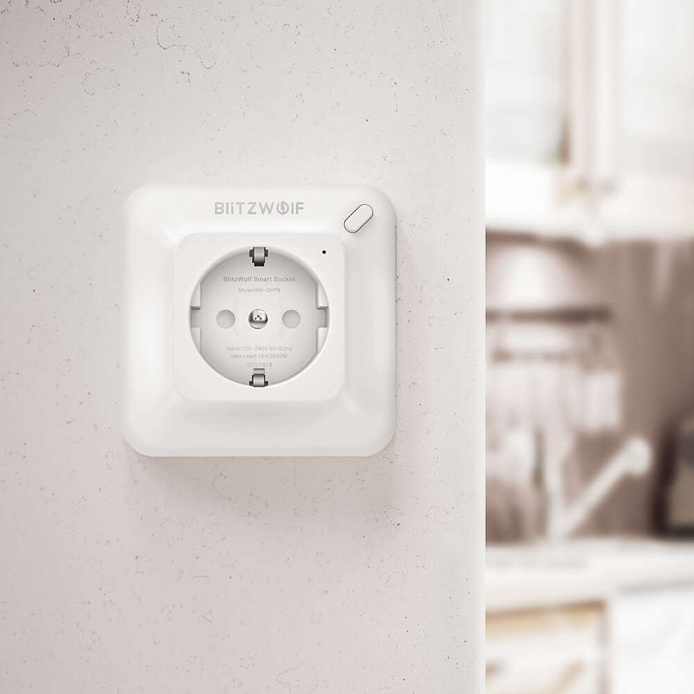 BlitzWolf® BW-SHP8 3680W 16A Smart WIFI-Steckdose EU-Steckdose Timer Fernbedienung Netzmonitor Arbeiten Sie mit Alexa Google Assistant IFTTT COD