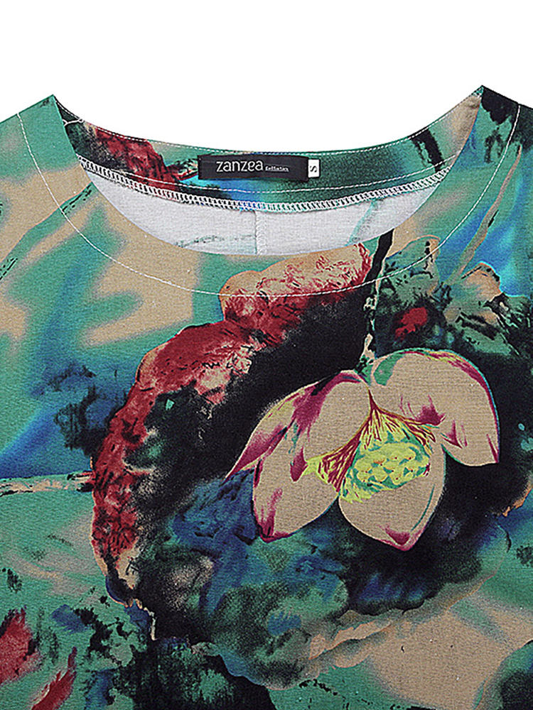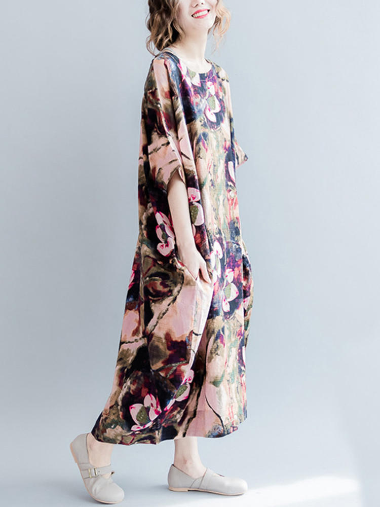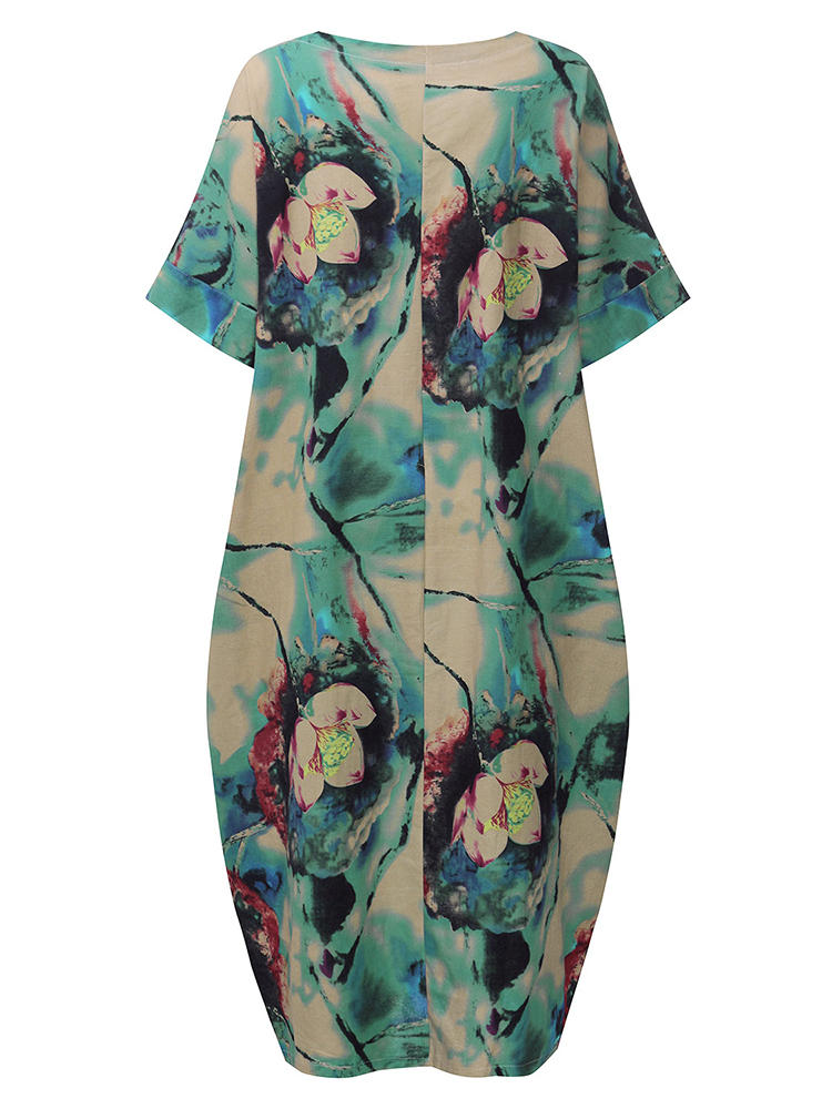 • Beiläufiges S-5XL Frauen Lockeres Lotus Druck Kleid