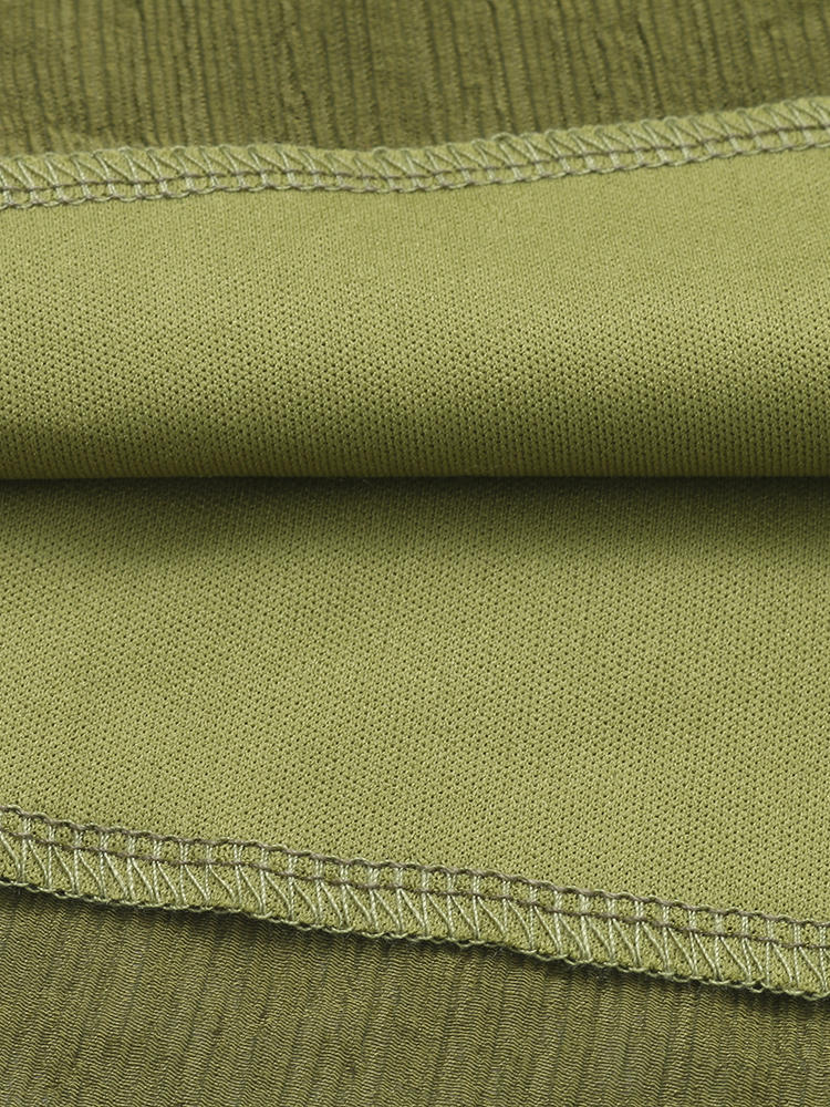 • Beiläufig Damen Laterne Hülse O-Ansatz reine Farbe gefaltet Kleid