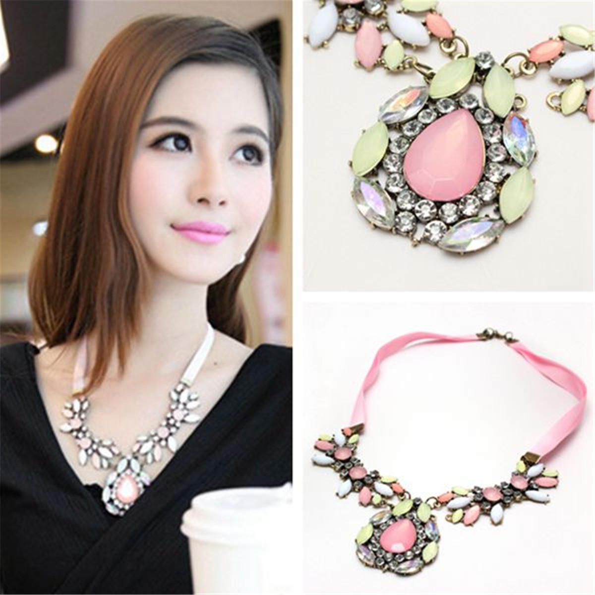Kirschrosa Kirschblüte Kristall Halskette Kette Schmuck