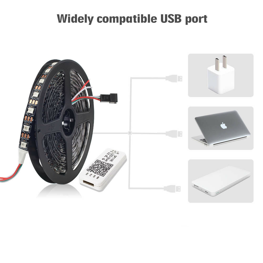 • DC5V 1M 2M WS2812B 5050 Bluetooth USB APP Steuerung RGB einzeln adressierbar LED Lichtstreifen Satz