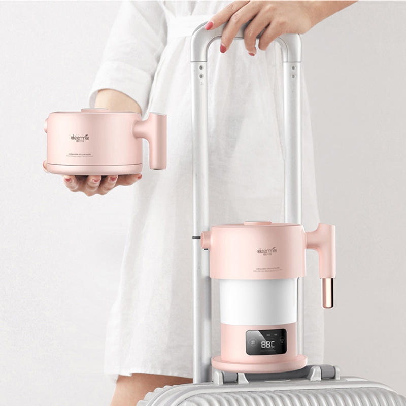 Deerma DEM-F300 100-240V Rosa Digitaler Bildschirm, der tragbaren Wasserkocher für die Reise faltet