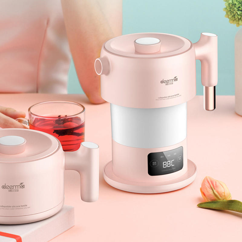 • Deerma DEM-F300 100-240V Rosa Digitaler Bildschirm, der tragbaren Wasserkocher für die Reise faltet
