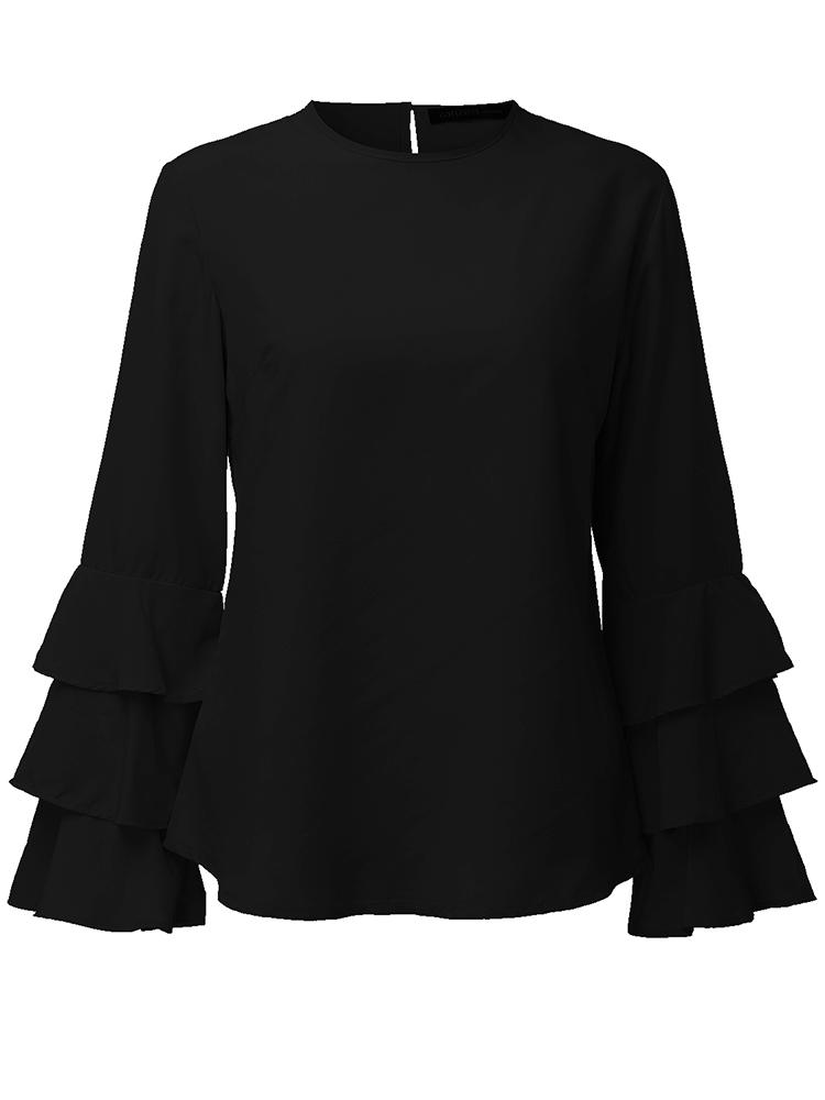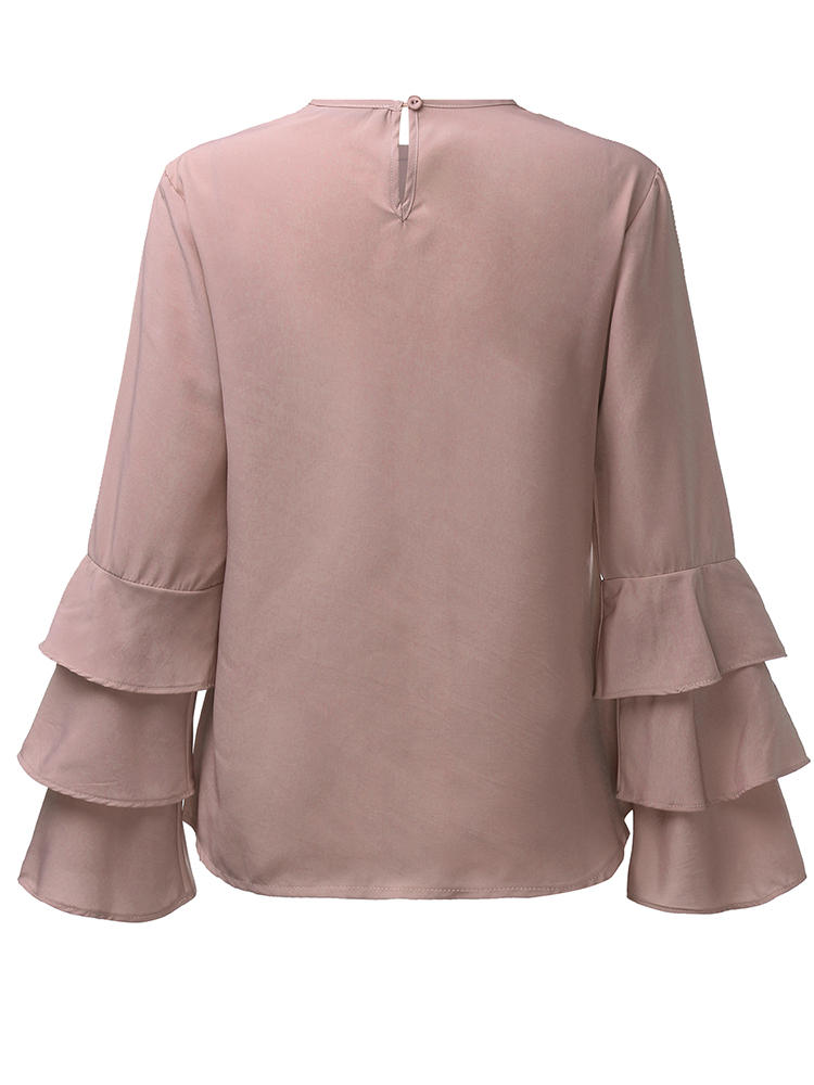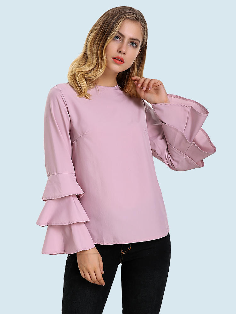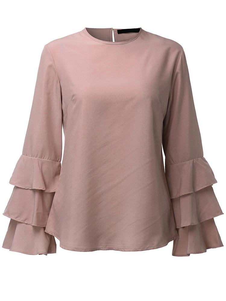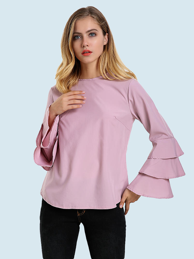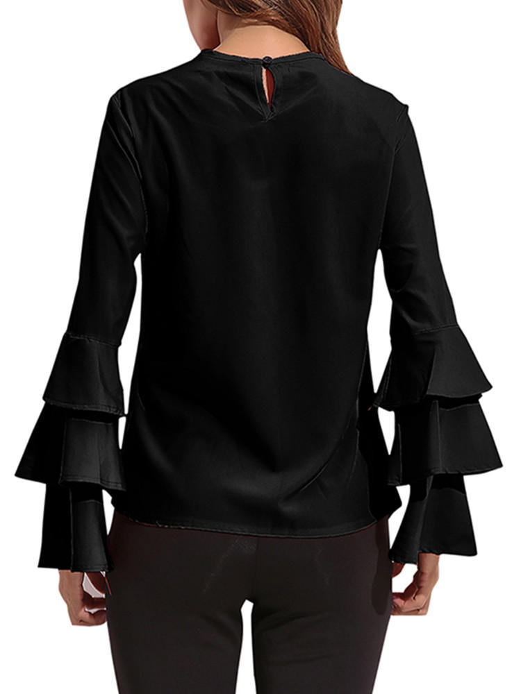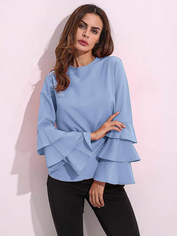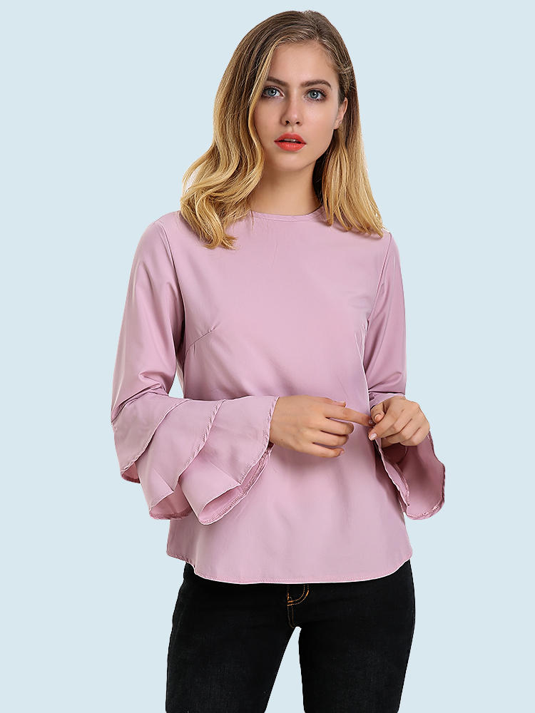 Elegantes Damen Bluse Einfarbig Glockenhülse O-Neck T-Shirt