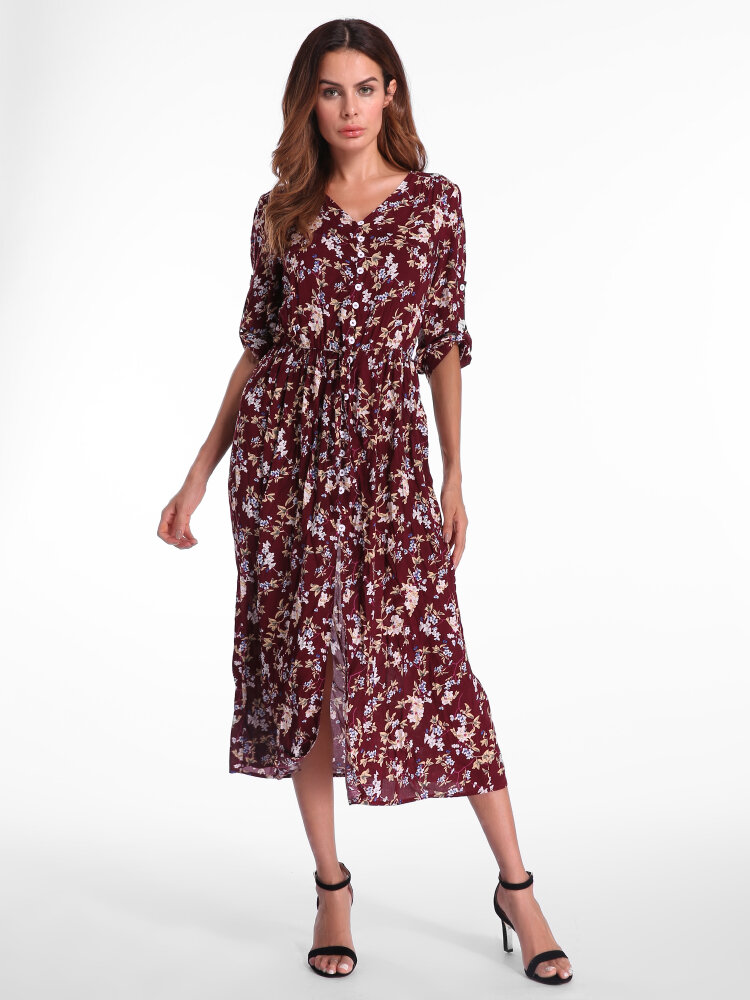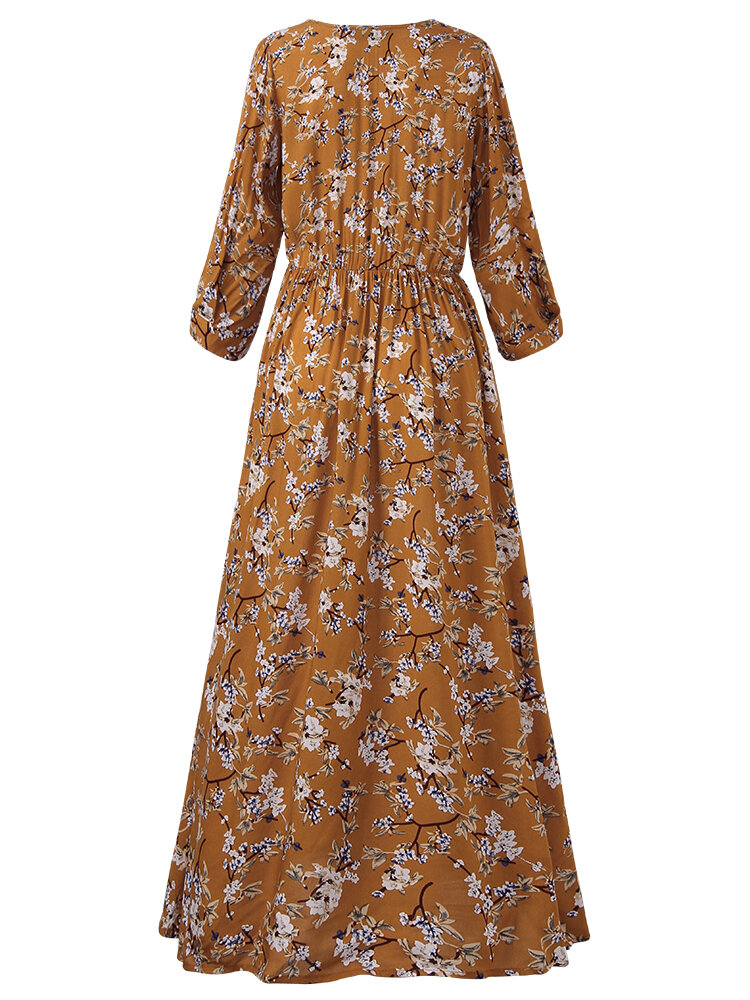 • Bohemian Floral gedruckt lose 3/4 Ärmel Maxi Kleid