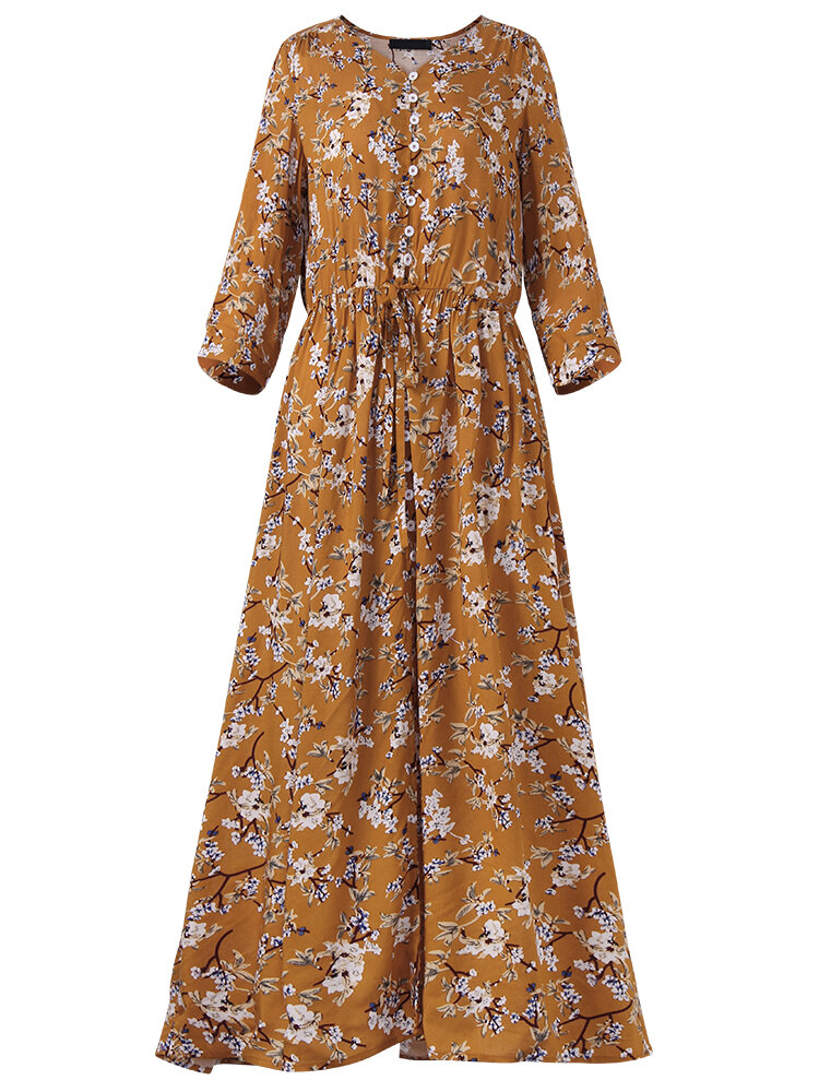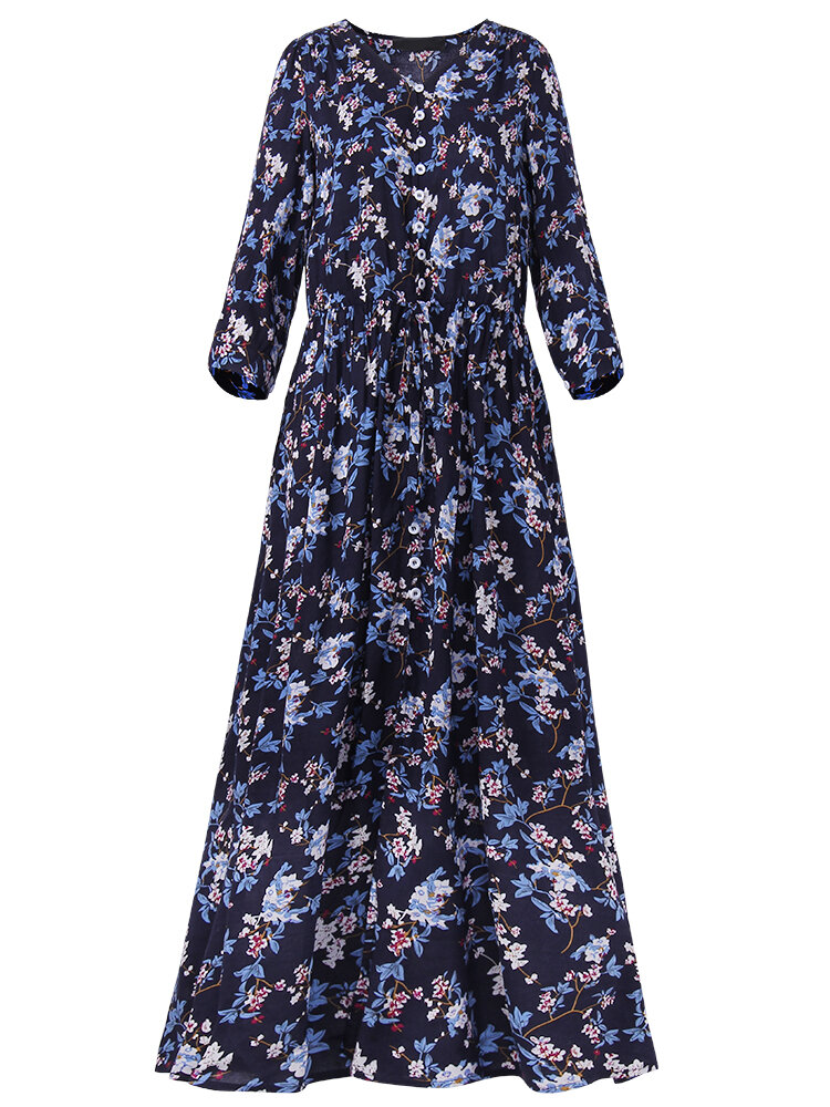 Bohemian Floral gedruckt lose 3/4 Ärmel Maxi Kleid