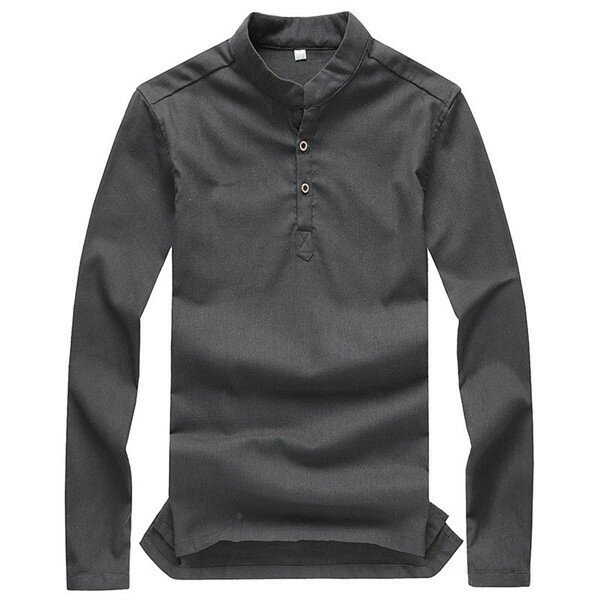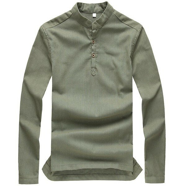 Leinen V Form Stehkragen Seiten Schlitze Saum Solide Süßigkeit Farben Lange Hülsen Shirts