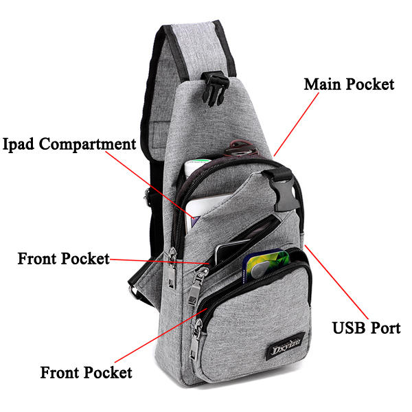 Männer Beiläufige Schlinge Tasche Outdoor Reise Brust Schulter Crossbody Tasche mit USB-Port
