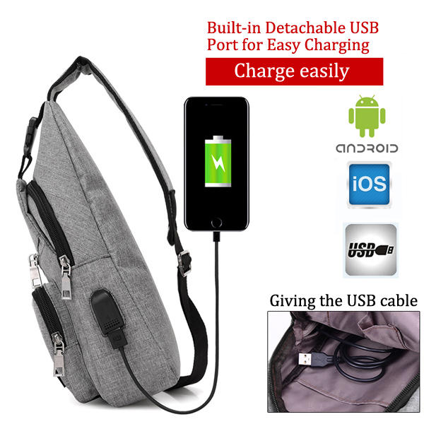 Männer Beiläufige Schlinge Tasche Outdoor Reise Brust Schulter Crossbody Tasche mit USB-Port