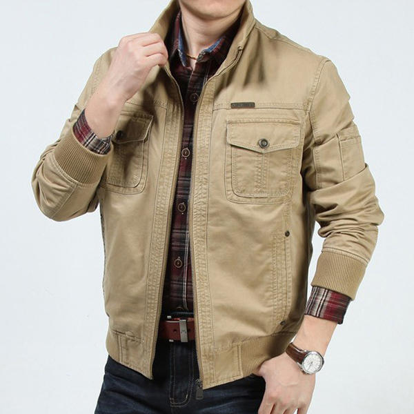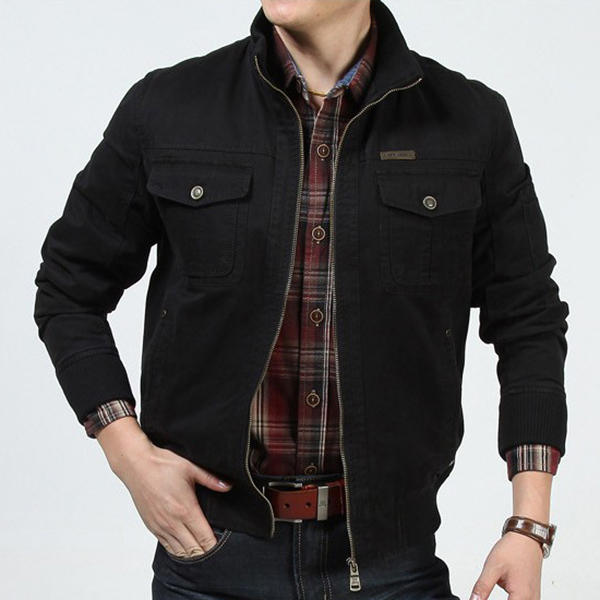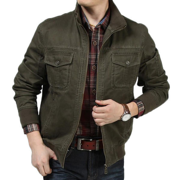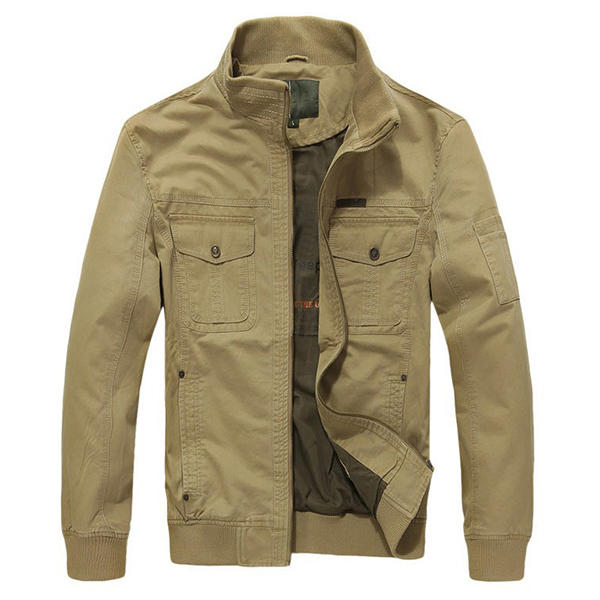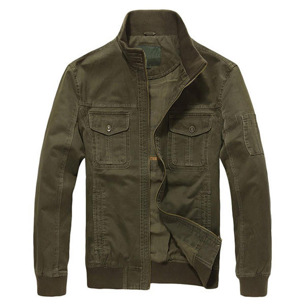 Mens Military Cotton Wearable Brusttaschen Reißverschluss Outwear Jacke