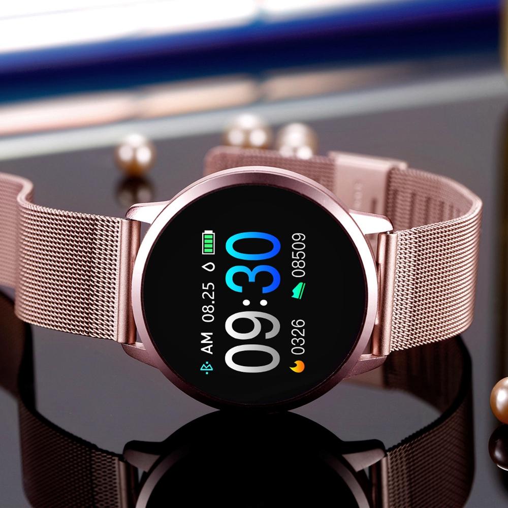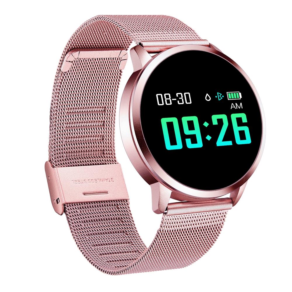 • [Neue Farbe aktualisiert] Newwear Q8 Edelstahl 0,95 Zoll OLED-Farbbildschirm Blutdruck-Herzfrequenz-Smart Watch