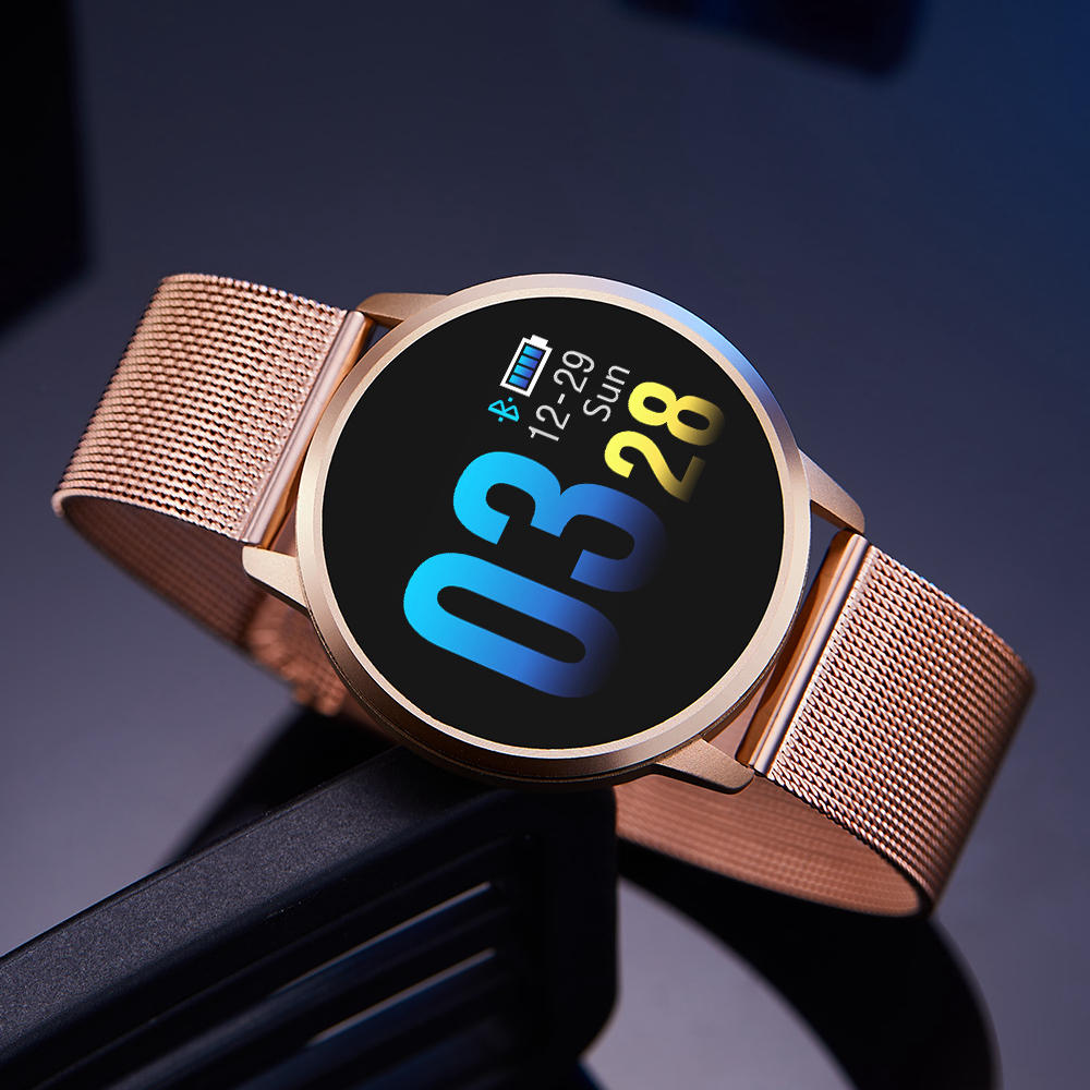 [Neue Farbe aktualisiert] Newwear Q8 Edelstahl 0,95 Zoll OLED-Farbbildschirm Blutdruck-Herzfrequenz-Smart Watch
