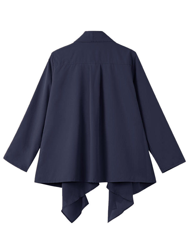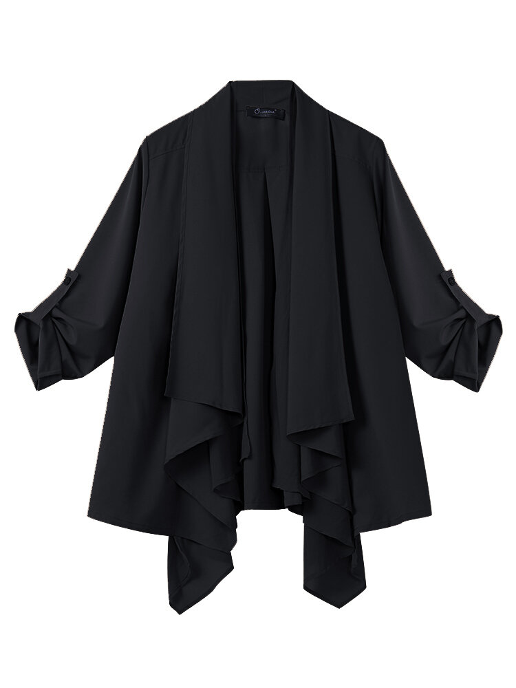 O-NEWE L-5XL Elegante Damen Revers Falten Hülsen Unregelmäßige Strickjacke