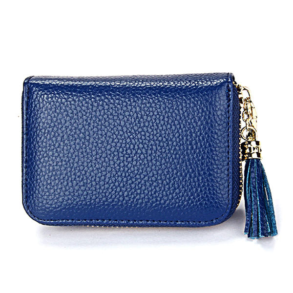 • RFID Antimagnetic Echtes Leder 15 Card Slots Multi-Slots Quaste Kartenhalter Münzen Tasche