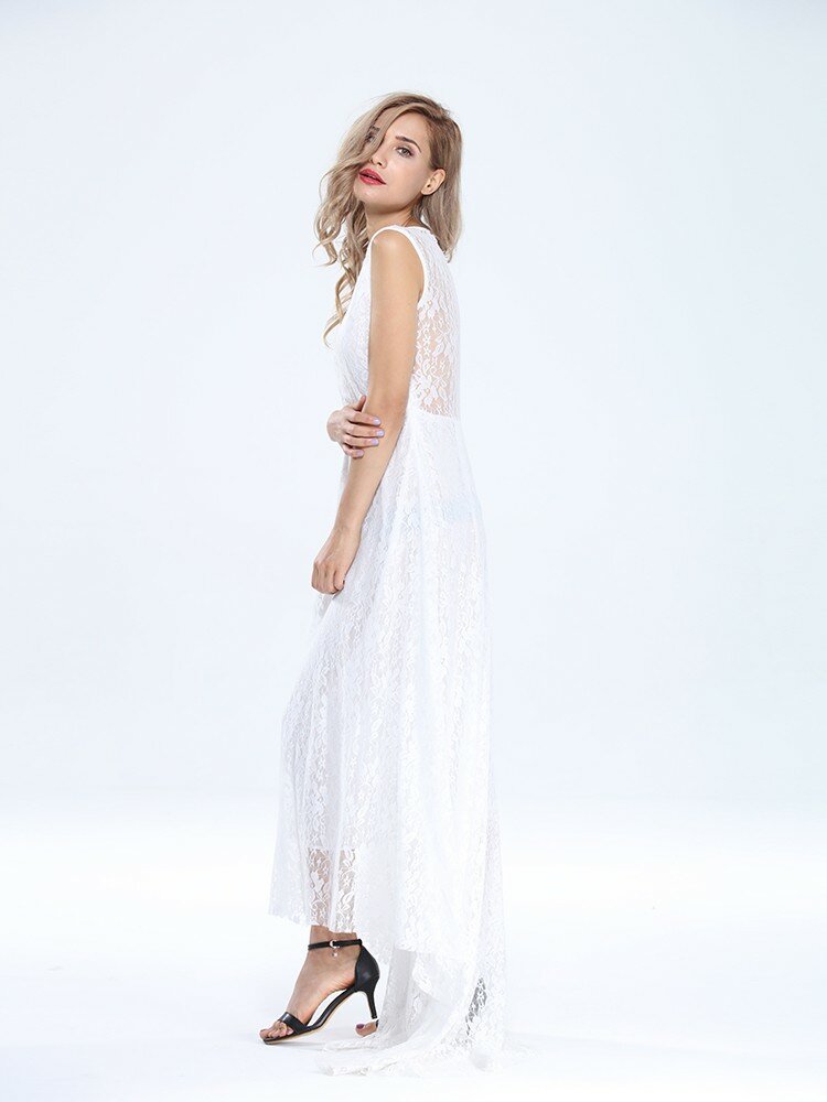 Sexy Spitze Sleeveless Maxi Abend Cocktail Kleid für Frauen mit Gürtel COD