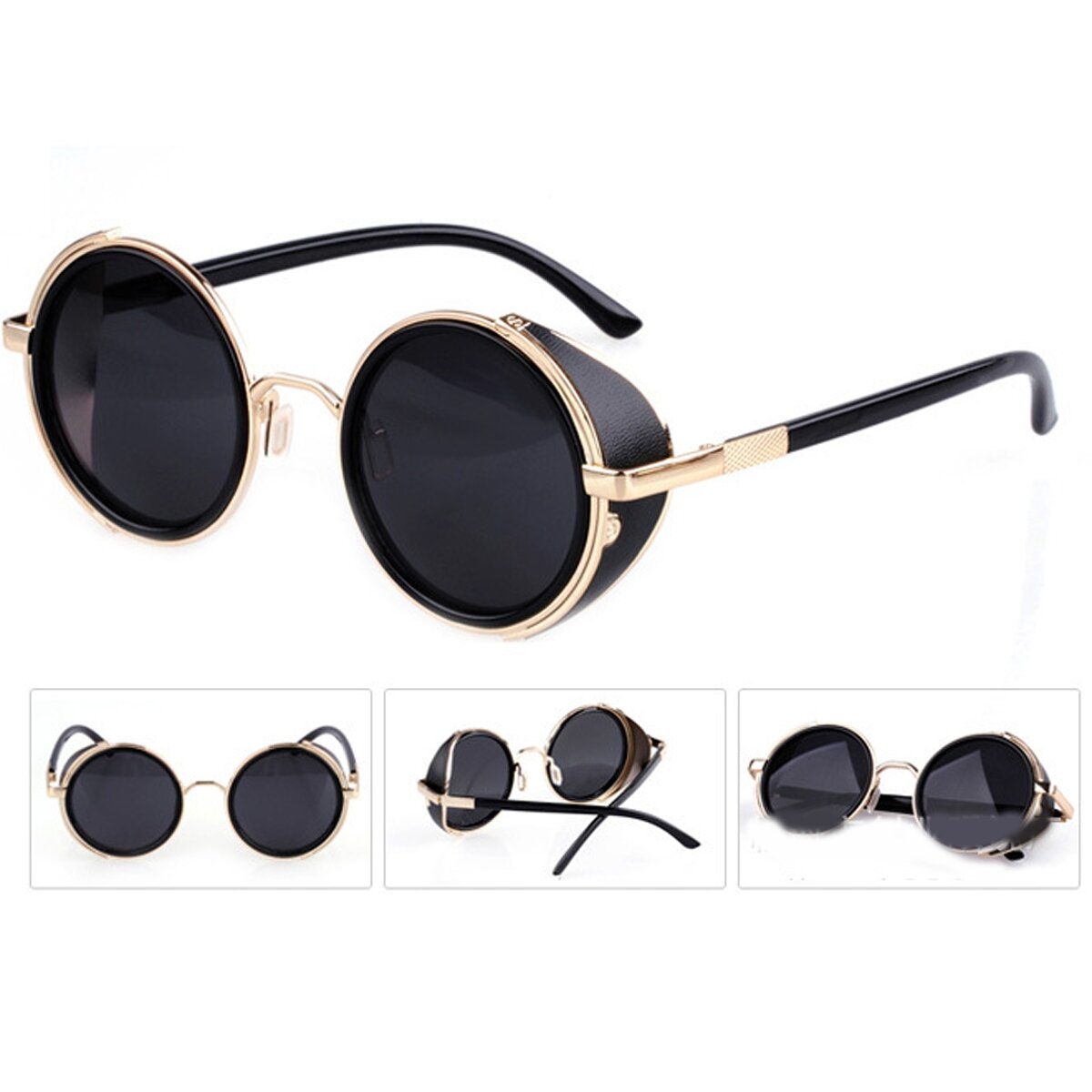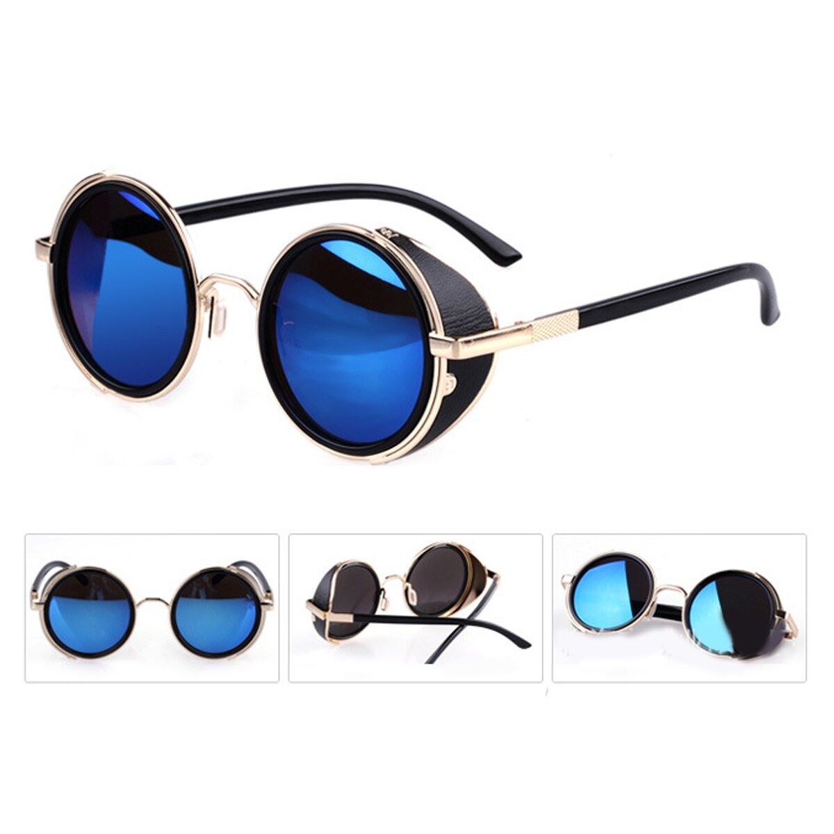 Unisex VIntage Sonnenbrille UV400 Steampunk Runder Spiegel Objektiv Glas COD