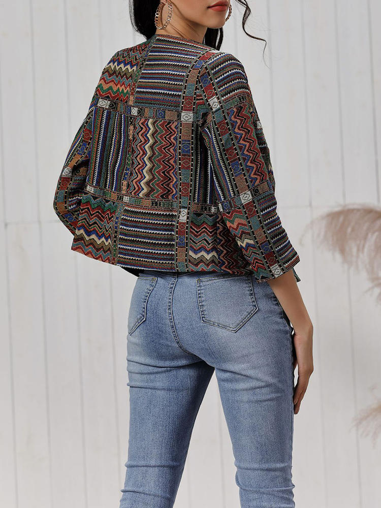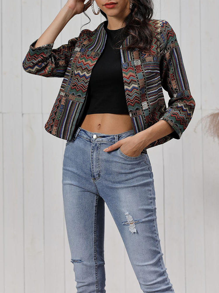 Vintage Damen Print Langarm Mäntel COD