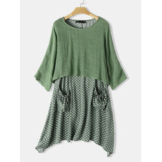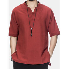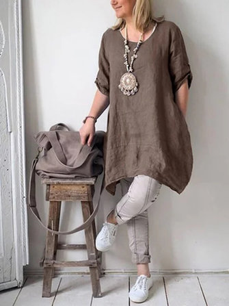 Damen Pure Colour Leinenhemd mit halber Hülse Kleid