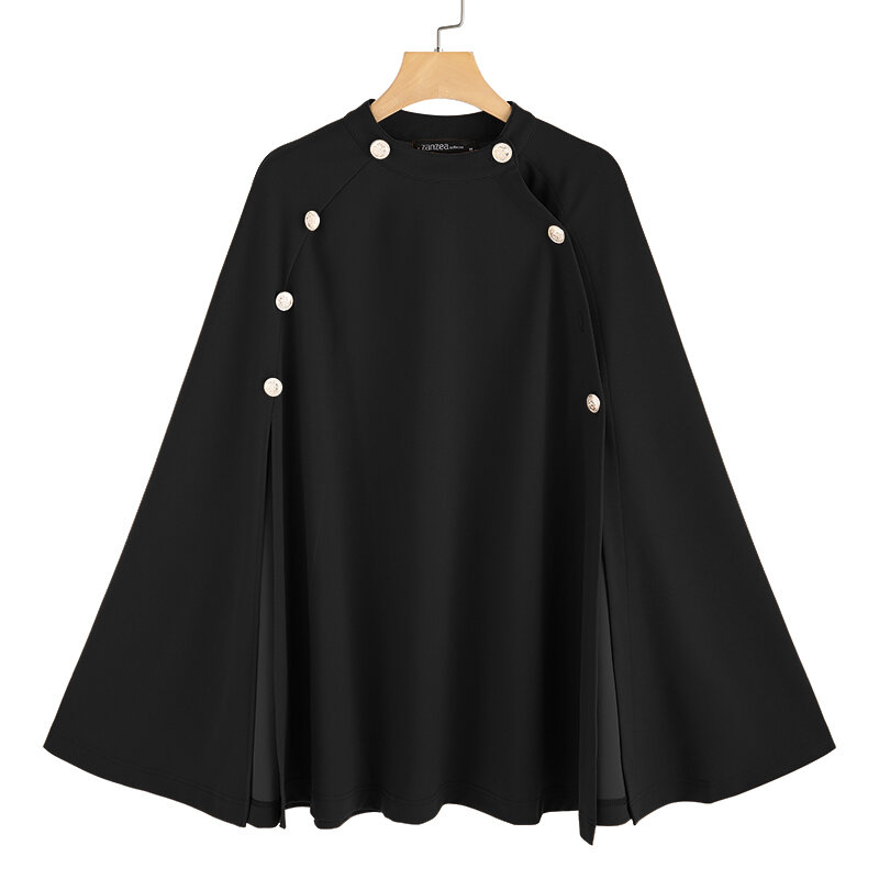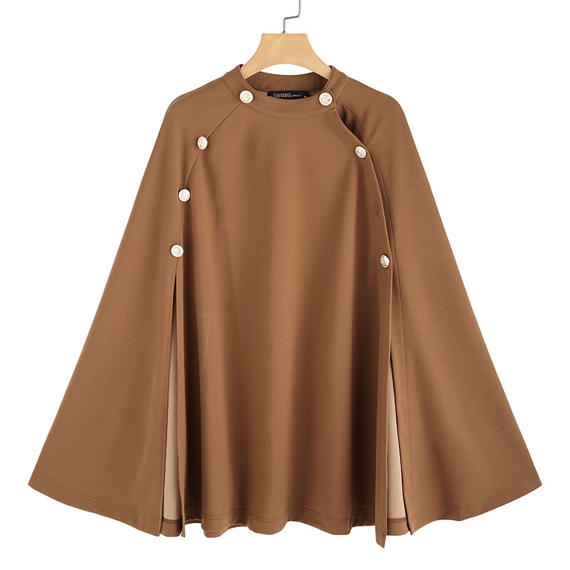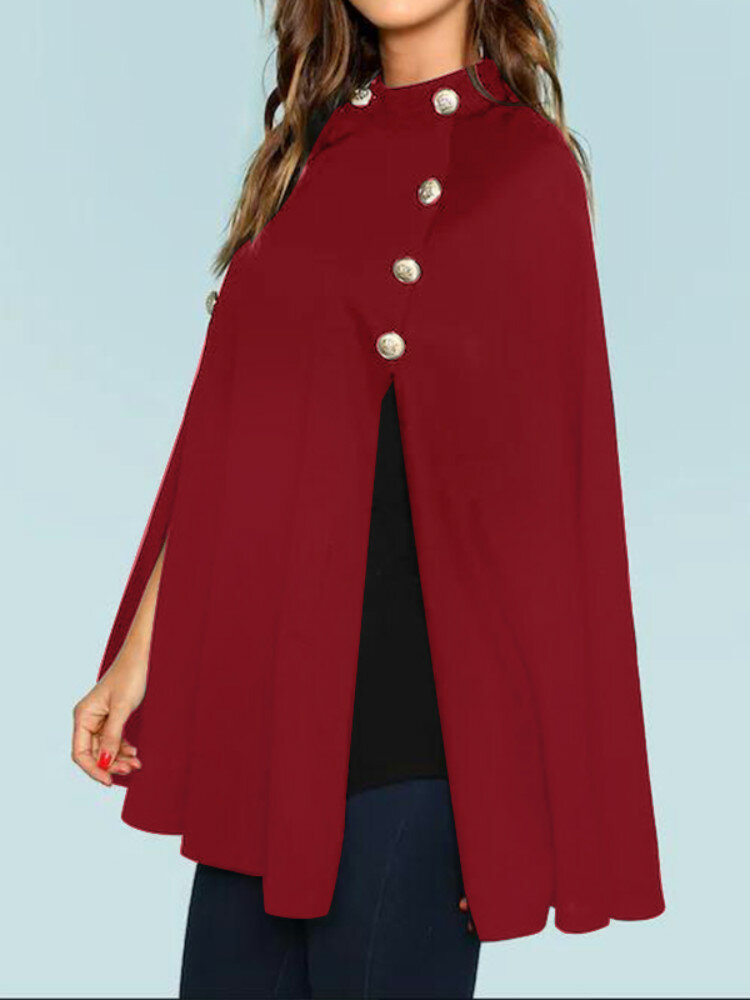 • Frauen British Style Solid Color Button Lose elegante Umhangmäntel