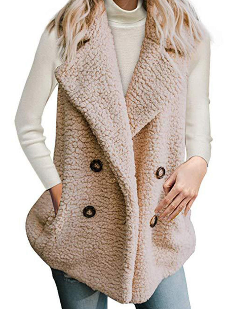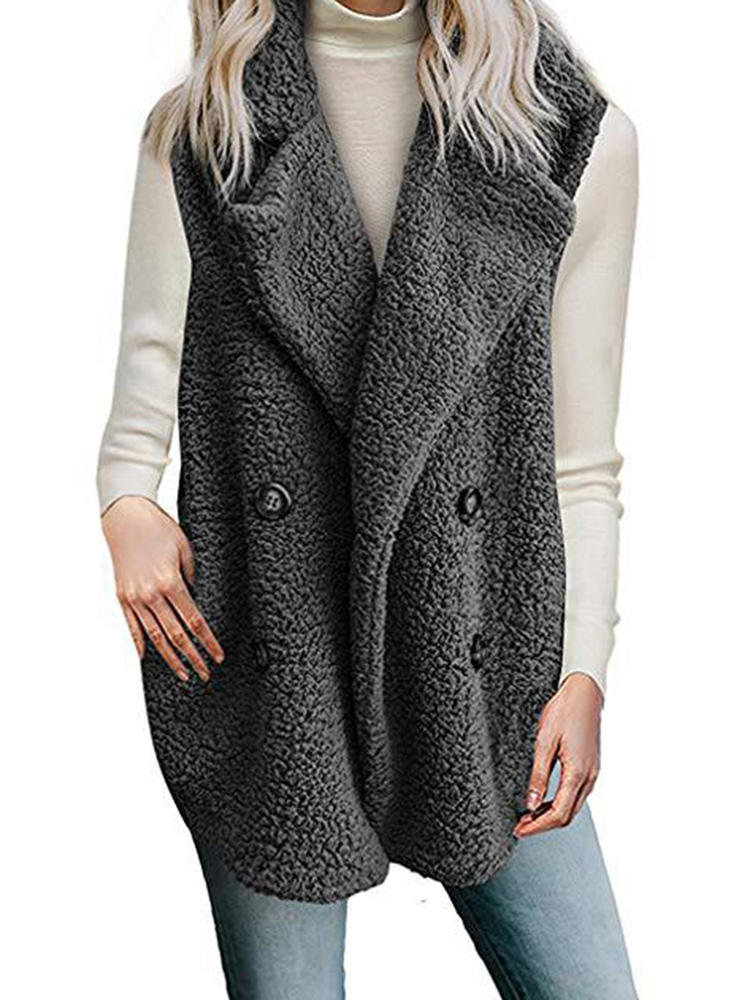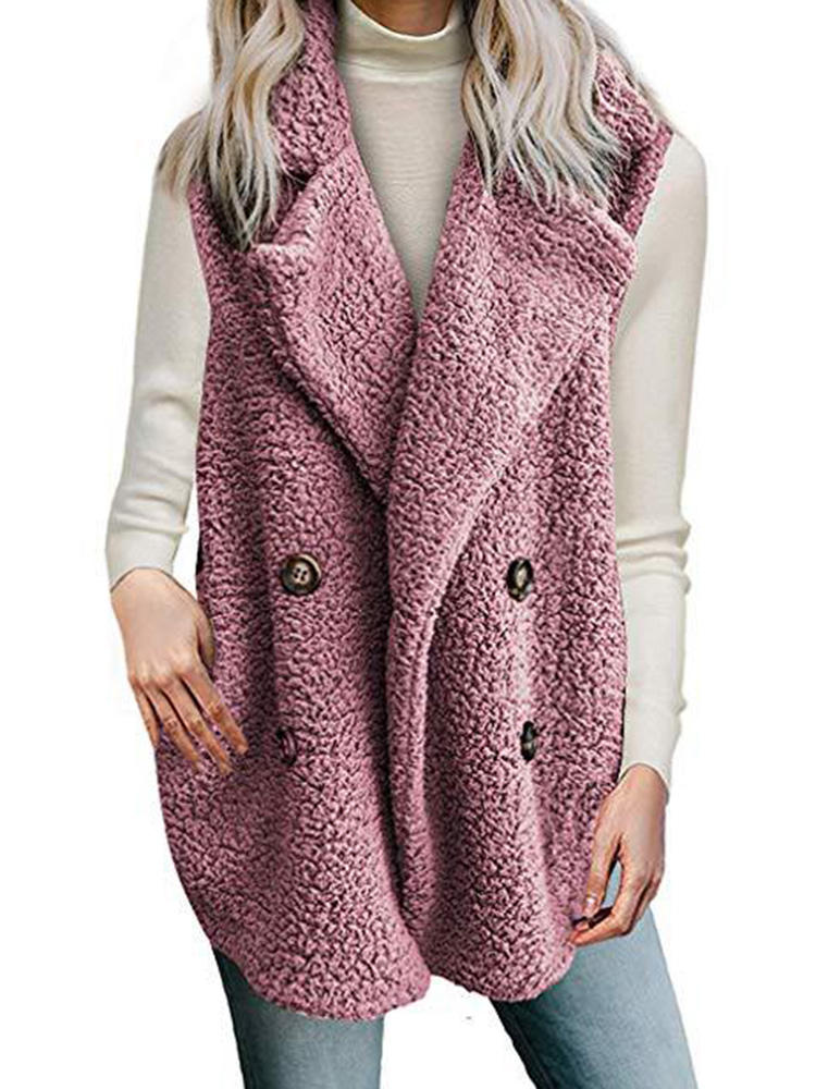 Damen Lässige Herbst Winter einfarbig ärmellose Fleece geknöpft Weste Mäntel