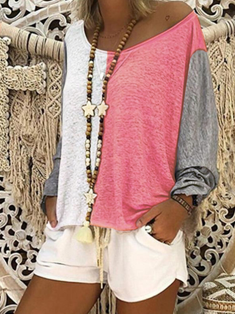 • Frauen-beiläufiges baggy Farben-Patchwork-Blusen-Hemd