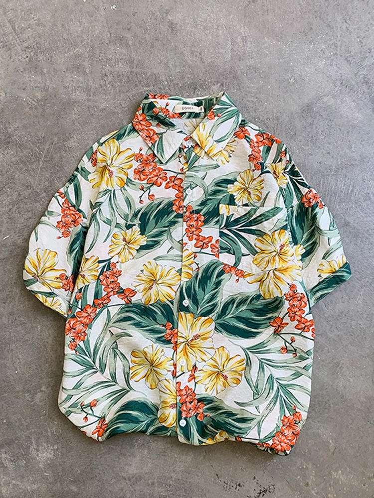 Frauen-beiläufiger Knopf lässt Blumendruck-Strandurlaub-Sommer-Bluse