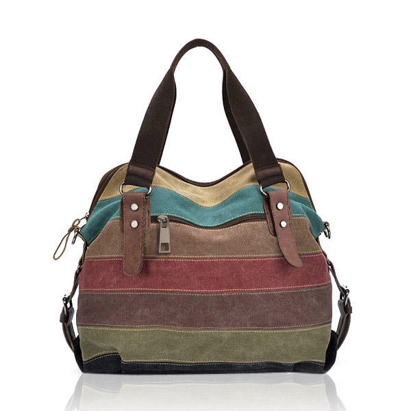 Damen Lässige Streifen Segeltuch Handtasche Micro-Fibric Leder Schulter Taschen Kontrastfarbe Crossbody Taschen COD