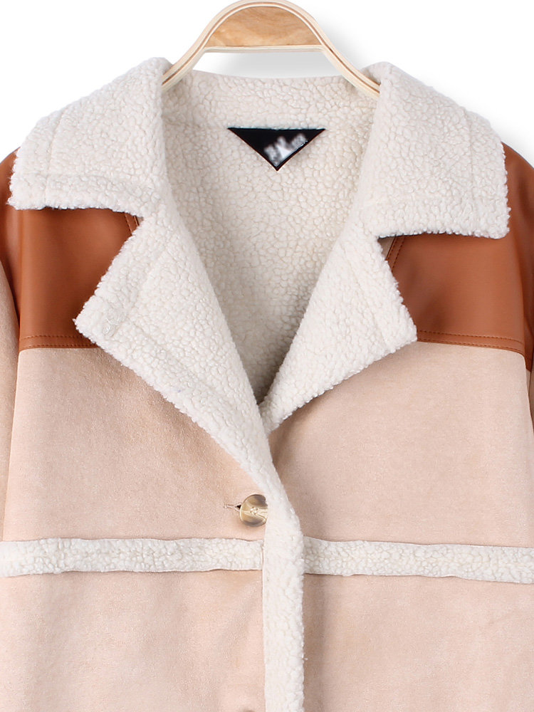 • Women Casual Warm Lammwolle verdicken Revers langer Mantel