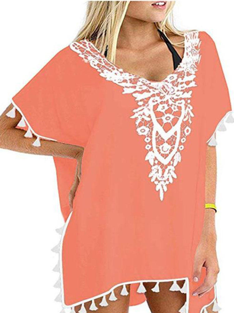 Frauen häkeln Chiffon Quaste Strand Vertuschungen für Badeanzug COD