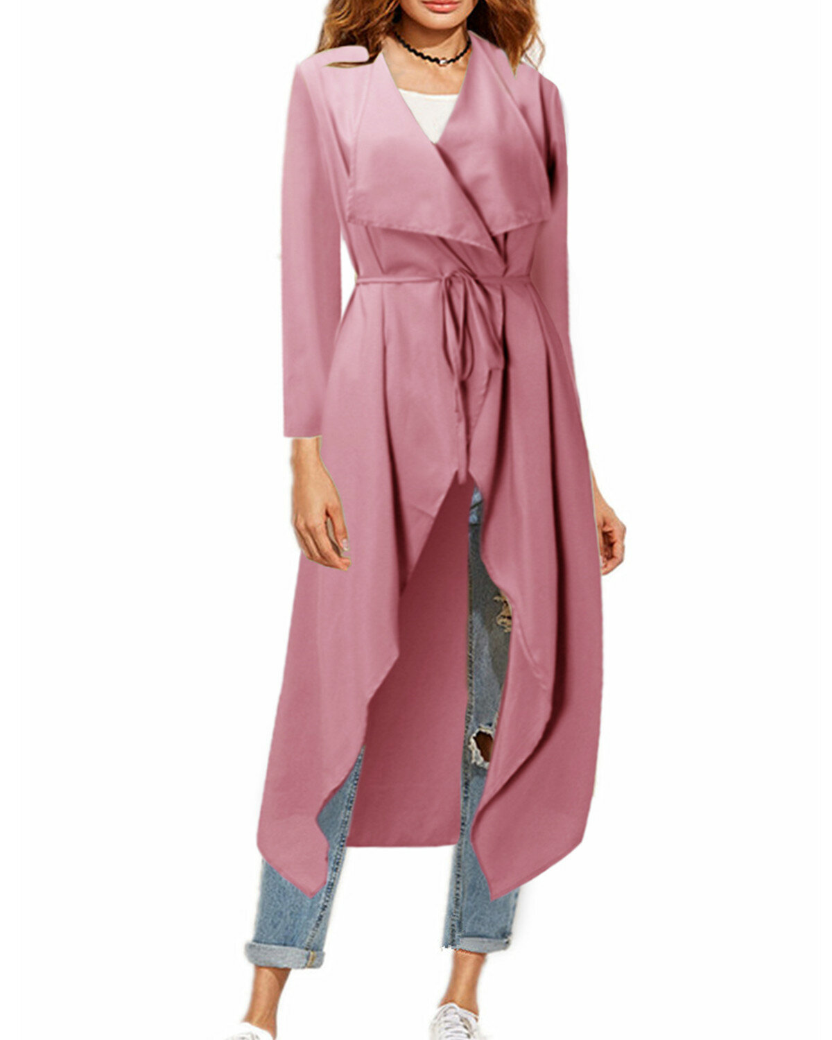 • Frauen-lange Hülsen-Wasserfall-Wolljacke-lange Mäntel mit Gurt