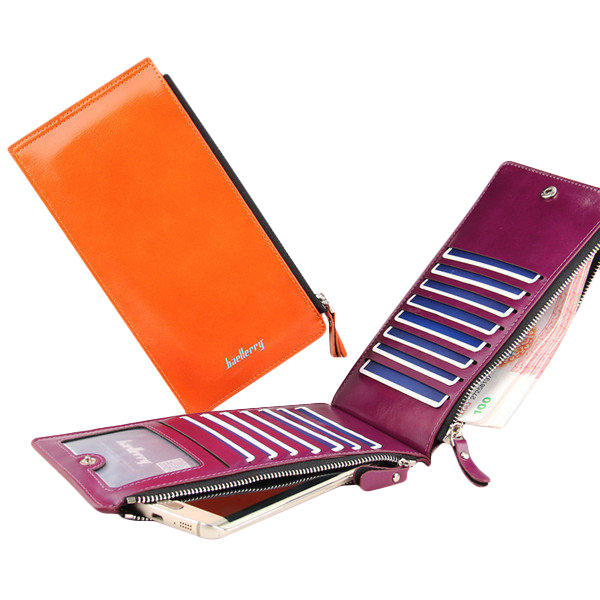 • Damen Waxy Ultradünne Leder Lange Geldbeutel Elegante Karte Multi Kartenhalter Telefon Brieftasche Münze Taschen