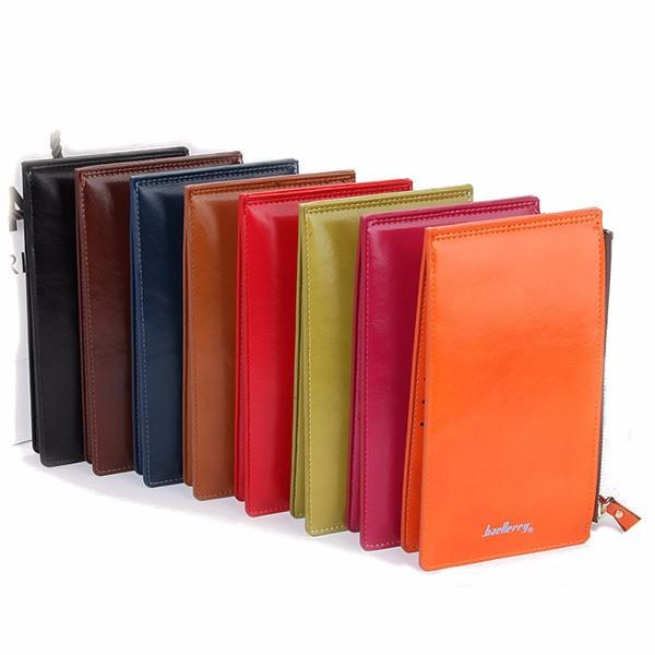Damen Waxy Ultradünne Leder Lange Geldbeutel Elegante Karte Multi Kartenhalter Telefon Brieftasche Münze Taschen
