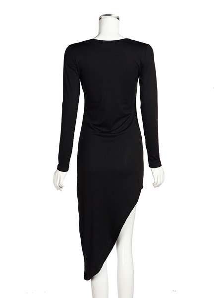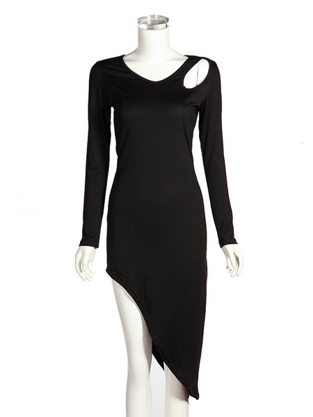 Sexy Hot aushöhlen Slit dünne lange Hülsen Cotton Abend Partei Kleid