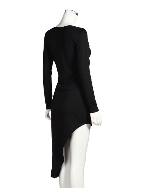 Sexy Hot aushöhlen Slit dünne lange Hülsen Cotton Abend Partei Kleid COD