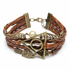 Vintage Eulenflügel Dreieck Perlen Multilayer geflochtenes Lederarmband