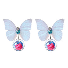Trendy Kristall Glas Ball Blume Schmetterling Stoff Ohrringe für Damen
